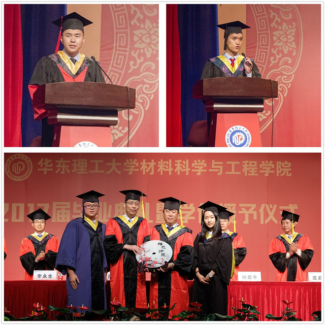 本科生代表高材144班高静铭、研究生代表14博士班陈潇先后发言,分享了在华理求学的点点滴滴,表达了对母校的千般眷恋,万般不舍。随后,两名毕业生代表向大学生做爱