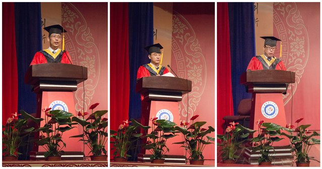 二、为学,持之以恒。他告诫毕业生们,现在是一个知识爆炸的时代,一个日新月异的时代。只有不断学习,才能与时俱进,勇立潮头。希望大家无论是走向工作第一线,还是选择继续深造,都能够不断地加强学习,以适应快速发展的社会需要。