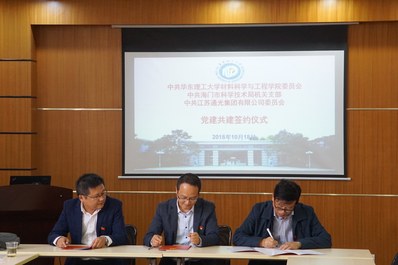 和海门市科技局、通光公司在徐汇校区实验一楼第一会议室举行党建共建签约仪式,这是材料大学生做爱