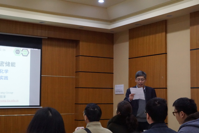 报告会上,杨全红教授首先生动地介绍了传统碳材料应用于先进电池和电化学储能上的现状和挑战,以及石墨烯材料所获得的重要机遇。重点剖析了致密储能的重要性以及石墨烯用于致密储能的理论基础和现实优势。随后,他介绍了课题组发明的石墨烯凝胶网络致密组装方法和高密多孔碳电极制备技术,提出了构建致密储能器件(电池和电容器)的普适化策略,解决了碳材料多孔和高密不可兼得的研究瓶颈问题,并进行了前景展望。此外,他还和同学们分享了自己的研究经验,鼓励同学们应该坚定目标,不畏困难,勤奋踏实地向着目标前进。
