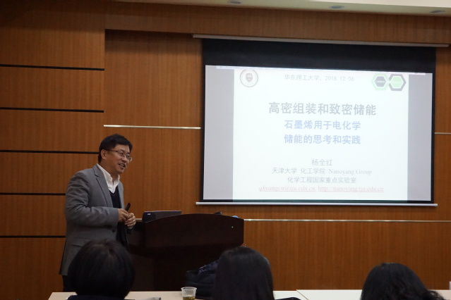杨全红教授来校访问,并作了题为“高密组装和致密储能——石墨烯用于电化学储能的思考和实践”的精彩报告。会议报告由材料大学生做爱
