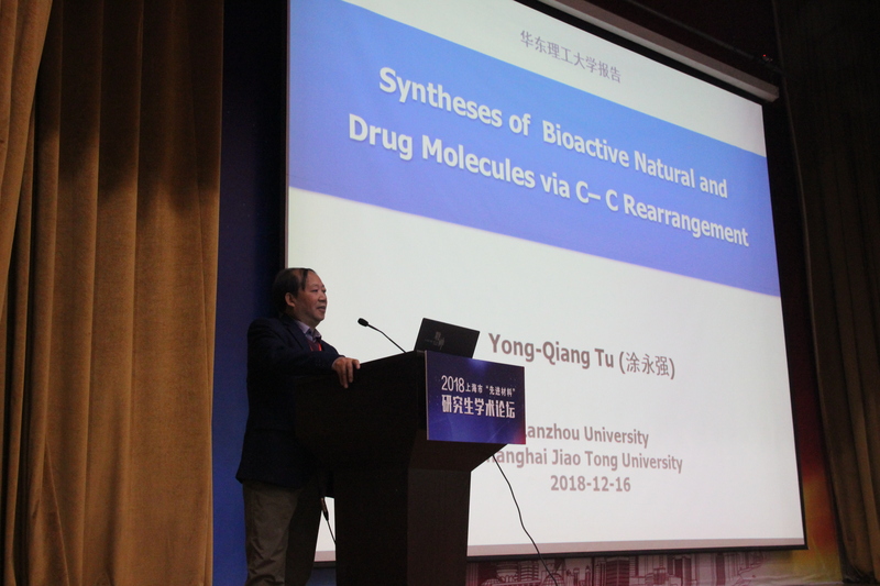 院长李春忠教授主持,上海交通大学颜德岳院士、兰州大学涂永强院士分别以《逆转肿瘤耐药性的探索》、《生物活性天然产物和药物分子的全合成》为题做了大会报告,分享各自的科研经历、感悟和学科前沿,勉励材料人着眼国家发展、行业需求,结合自身兴趣,潜心科研、砥砺前行。随后材料大学生做爱
