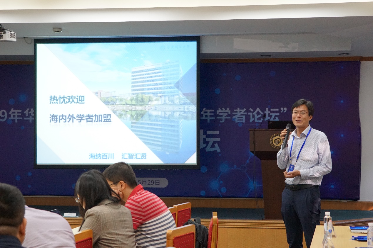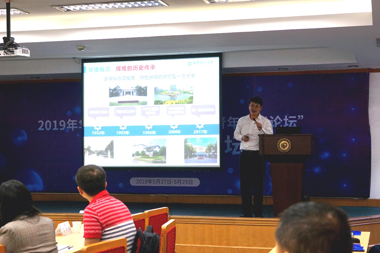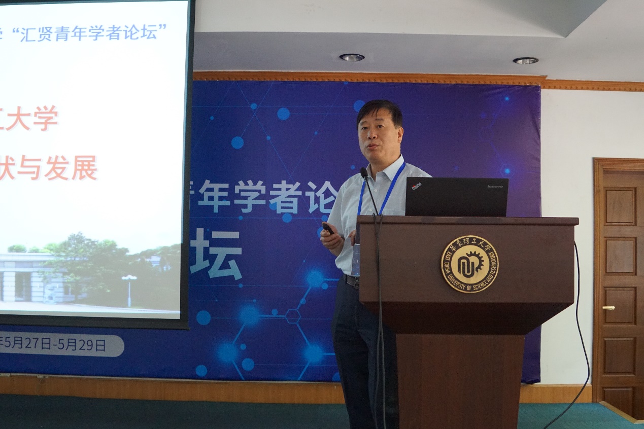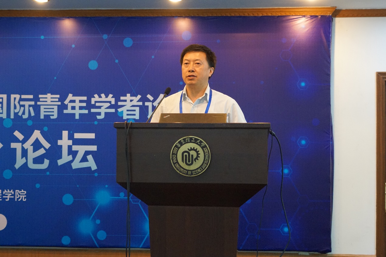 刘昌胜院士致开幕辞,代表学校对与会专家学者和海内外青年才俊的到来表示欢迎和感谢。他首先向与会学者介绍了华理的办学历史、发展现状和近期创立的一大批标志性成果。他指出,学校肩负着建设“双一流”的重任,需要加快实施“人才强校”主战略,汇聚全球一流的人才,形成世界英材的聚集地,为材料学科的进一步发展注入新鲜活力。他希望通过此次论坛的学术交流,青年学者们能展示学术风采,碰撞学术火花,激发创新思想。最后,他表示华理是一所求贤若渴的大学,诚邀海内外英才来华理探索新时期的学科、学术发展之路,在未来的征途上续写华理新的辉煌。