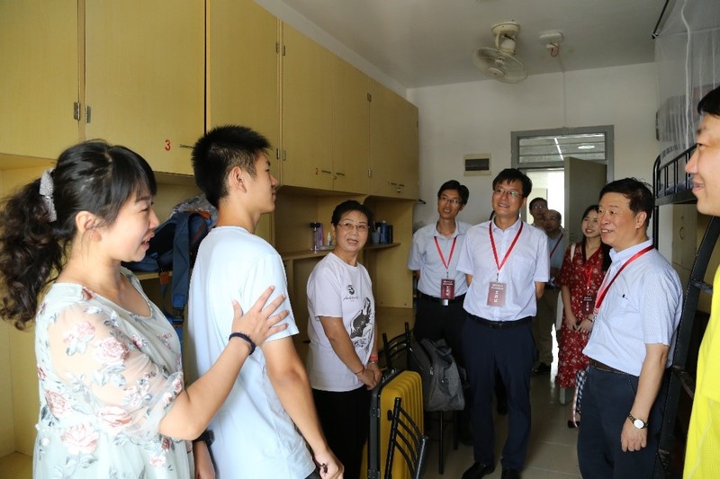 上午,党委书记唐颂超,副院长(主持工作)林绍梁,副书记戴诚安,副院长李欣欣,等一行人来到迎新现场,与师生交流,随后一行人走访了新生宿舍,了解新生情况,勉励新生勤奋学习,尽快适应大学生活。同时,大学生做爱