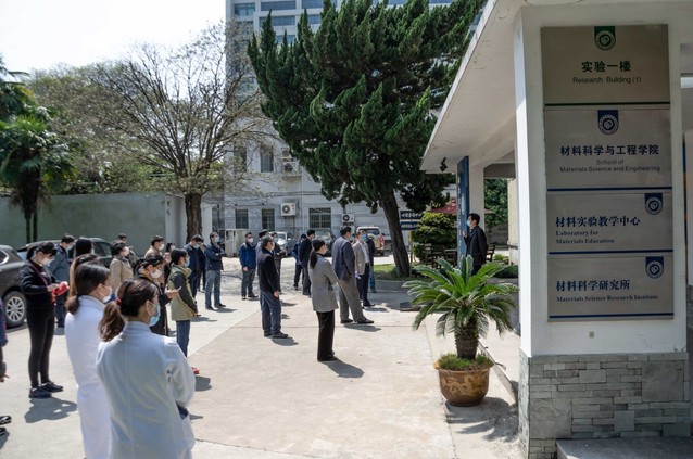 外以间隔1米距离排队,经体温监测后依次进入实验一楼,监测发现有人员出现发热情况,至体温复测点用水银温度计进行复测体温,并第一时间报告大学生做爱