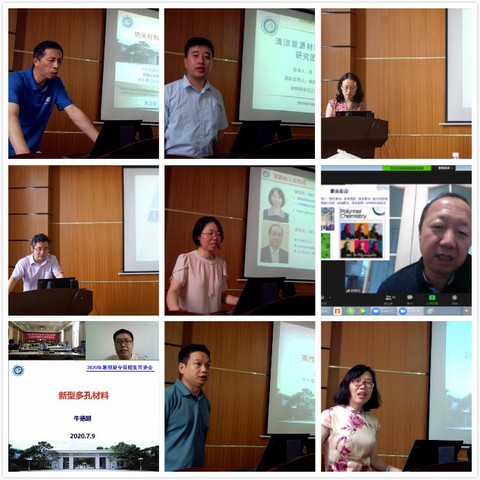 研究生招生负责人陈亚琴对同学们普遍关心的招生政策进行了详细解读,并线上回答同学们的各种提问。随后,上海市先进材料重点实验室王立权副教授,低维材料化学研究室牛德超副教授,材料研究所所长胡爱国教授,超细材料制备与应用教育部重点实验室朱以华教授,教育部医用生物材料工程研究中心屈雪教授,先进树脂复合材料研究室万里强副教授,新型清洁能源材料研究室侯宇副教授,特种玻璃与光电子材料研究室曾惠丹教授分别介绍了团队研究方向、导师队伍、学术成果、学生大学生做爱、就业等情况。