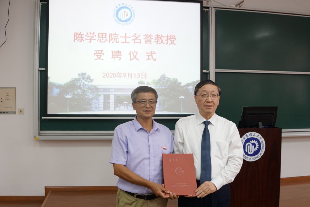 楼201室举行,副校长钱锋院士出席受聘仪式并为陈学思院士颁发聘书、佩戴校徽。仪式由材料大学生做爱