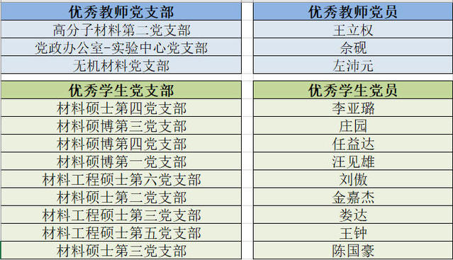 学生党支部书记述职 经无记名打分,高分子材料第二党支部等3个教师党支部、材料硕士第四党支部等9个学生党支部,王立权等3位教师党员、李亚璐等9位学生党员获得年度优秀。